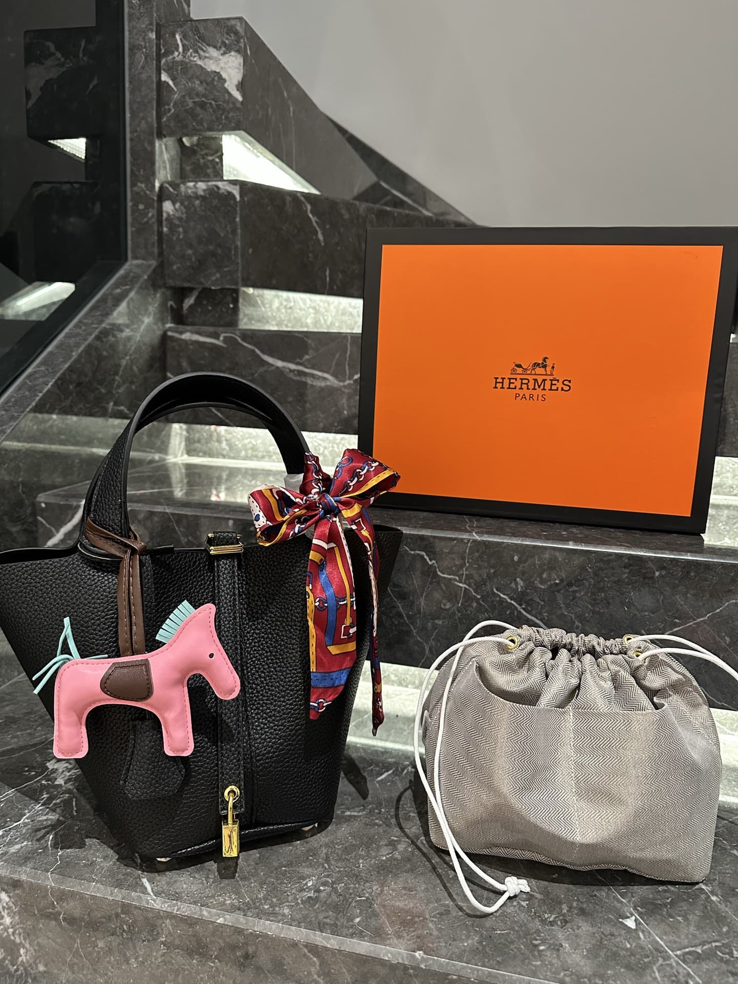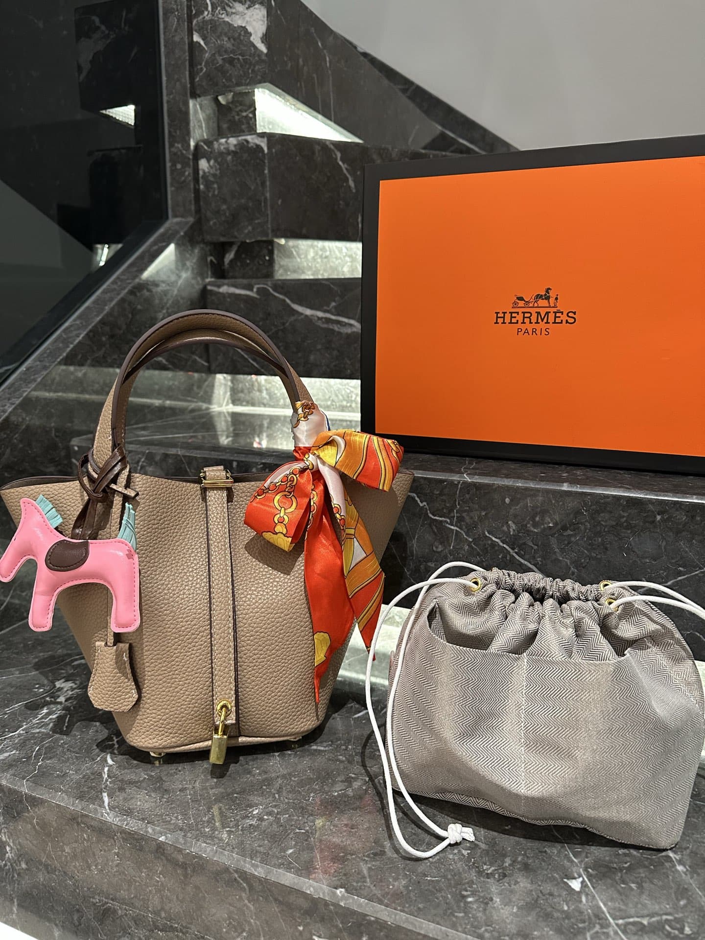 【エルメス】入手困難なピコタンロックPM18+内袋+ポニーペンダント+スカーフ