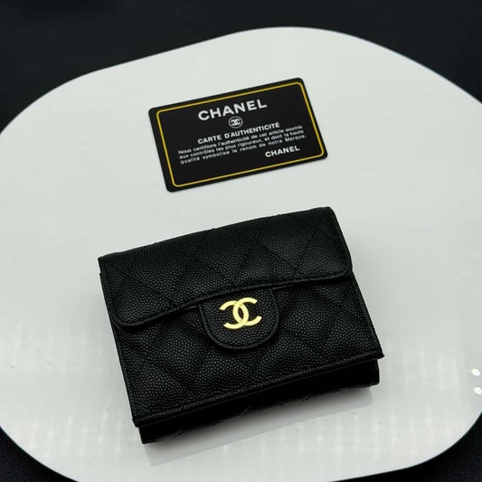 【シャネル】定番CFライン キャビアスキン三つ折財布 高級感漂う春夏新作
