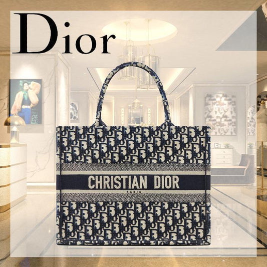 【ディオール】◆大人気 BOOK TOTE 定番柄刺繍 トートバッグ-3 sizes